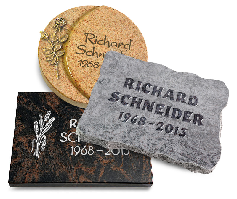 Sie suchen nach dem besonderen, schönen Grabmal für einen einen geliebten Menschen: MEMORUM-Grabmale ist der größte Online – Anbieter von günstigen Sandstrahl gravierten modernen Urnengrabmalen und Grabeinfassungen bzw. Grabsteine für Ihr Rasengrab aus Naturstein. Wir arbeiten mit Steinmetzen in ganz Deutschland zusammen – sogar viele Bestatter gehören zu unserem Kundenstamm, Bestatter die dann unsere Urnengrabmale beim Trauerfall Ihren Kunden – Beisetzung gemeinsam mit einer Grabeinfassung von uns als Komplettpaket anbieten können. MEMORUM ist ein Steinmetz Meisterbetrieb, mit 3 Bildhauermeistern, unser Qualitätsanspruch setzt Maßstäbe, besuchen Sie unser Vielfältiges Angebot an Grabmale für Ihr Rasengrab. Auch für Ihr großes Familiengrab wenn später eine Urne zusätzlich beigesetzt wurde, und Sie nicht möchten das der Grabstein für die zusätzliche Schrift wieder abgebaut werden muss, bietet sich ein Grabmal von MEMORUM perfekt an. Das Grabmal wird einfach nur in die Erde etwas schräg gelegt, und stellt dann eine würdevolle Grabstätte für Ihren geliebten Menschen dar. Bei uns zählt Qualität. Der günstige Preis resultiert aus der standardisierten Beschriftungstechnik von ausgewählten Schriften, umgesetzt in dauerhafter Sandstrahltechnik oder hochwertigen Metallguss Inschriften. Mit unseren Produkten entscheiden Sie sich für stilsichere und dauerhafte Grabgestaltungen vom Meisterbetrieb, die rationell gefertigt und deshalb so überraschend günstig sind.